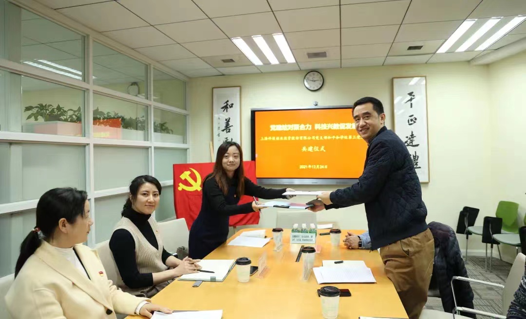 2021年12月24日,beat·365(中国)在线唯一官方网站党支部与平和教育集团第三党支部举行主题为“党建结对聚合力,科技兴教促发展”的结对共建仪式。共话科教合作新前景。